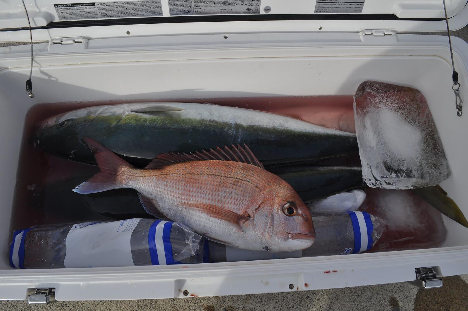 ワラサ3kgから5kgが3本とマダイでした。