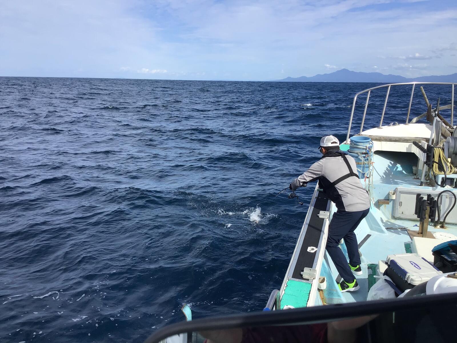 10月最後の日です。天気は晴れで、海はウネリが有りますがジギングに支障は有りません。