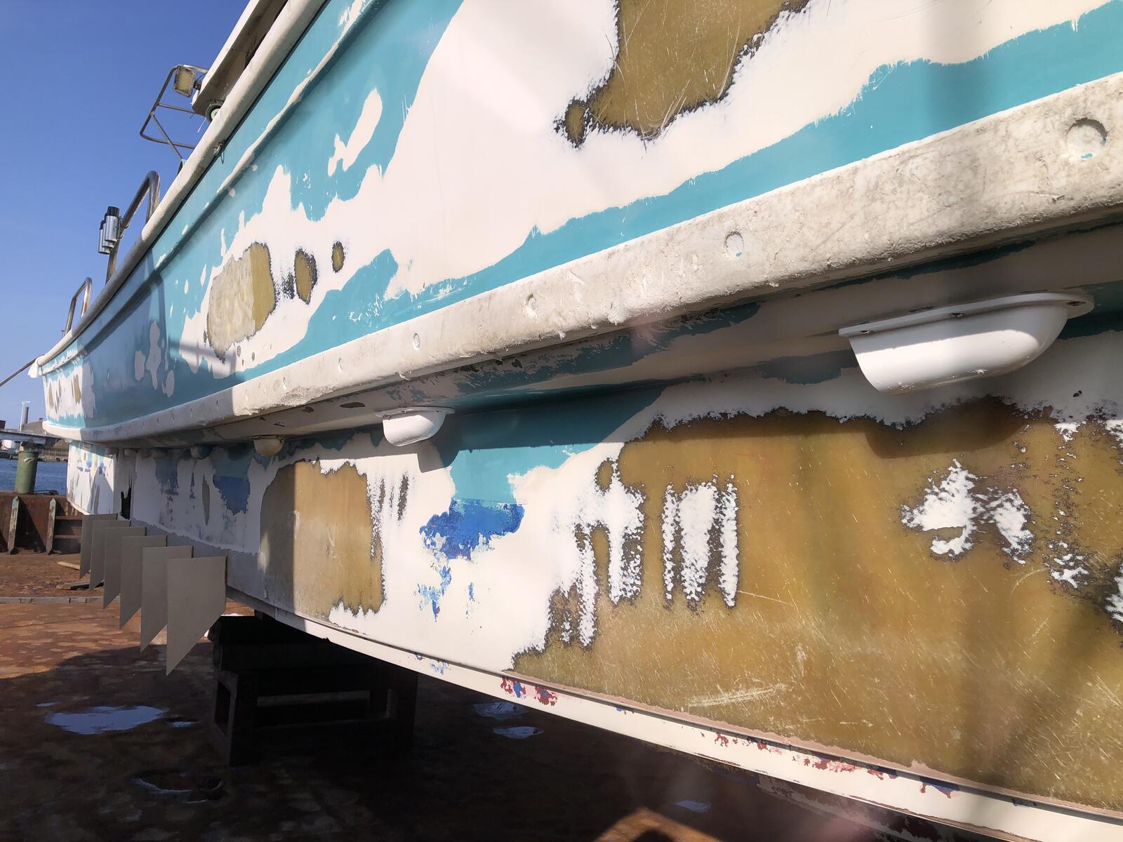 FRP修理が終わり、船底塗装や船体塗装が終わればとりあえず船体は完成です。海に浮かべることが出来ます。