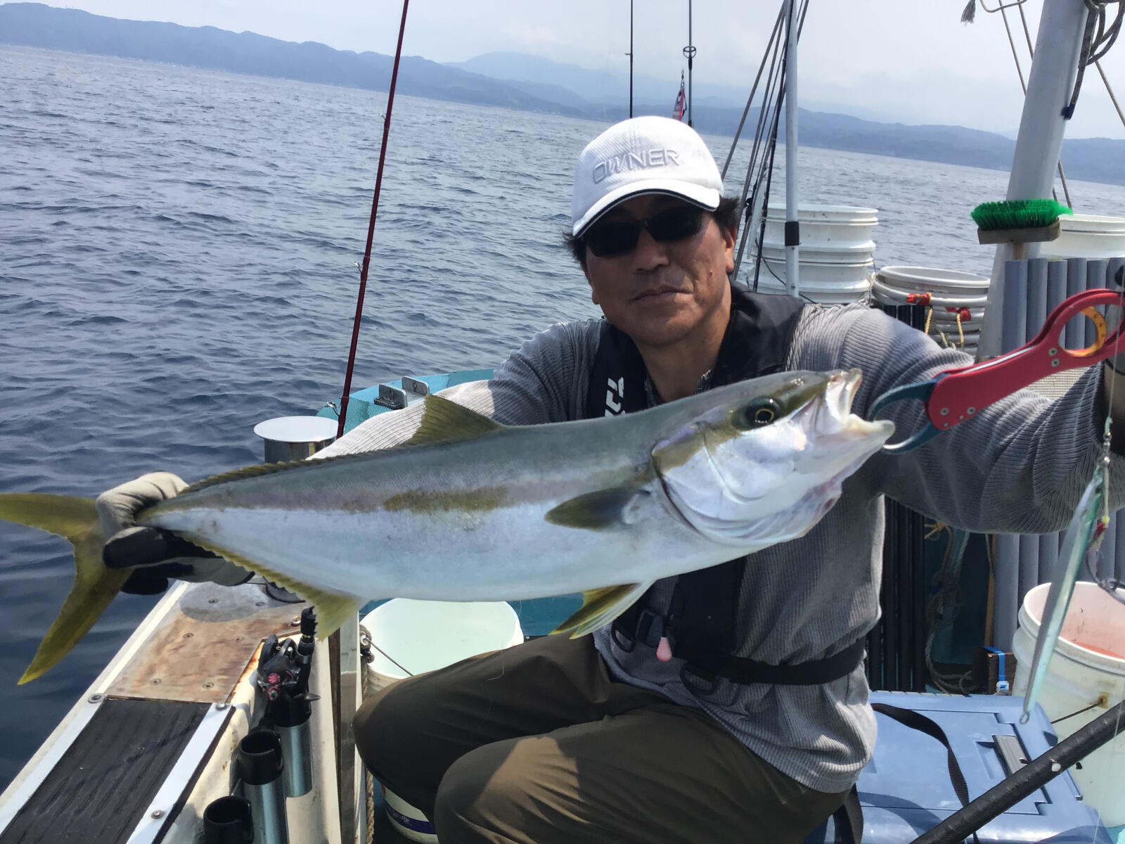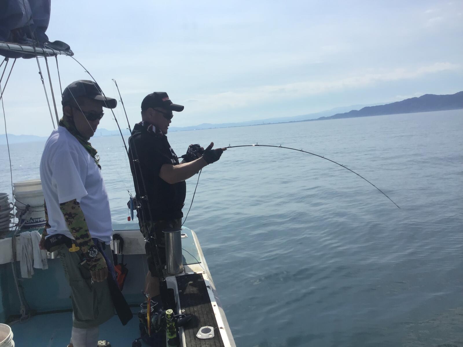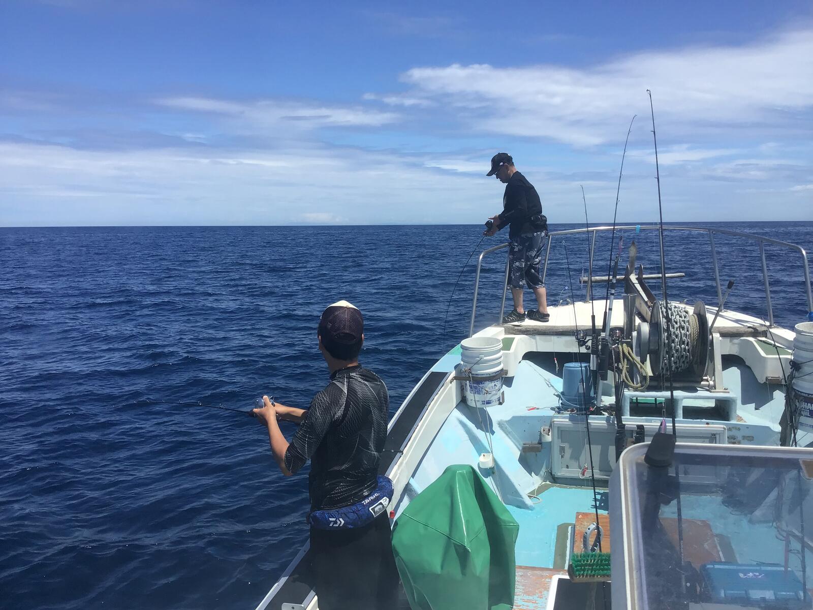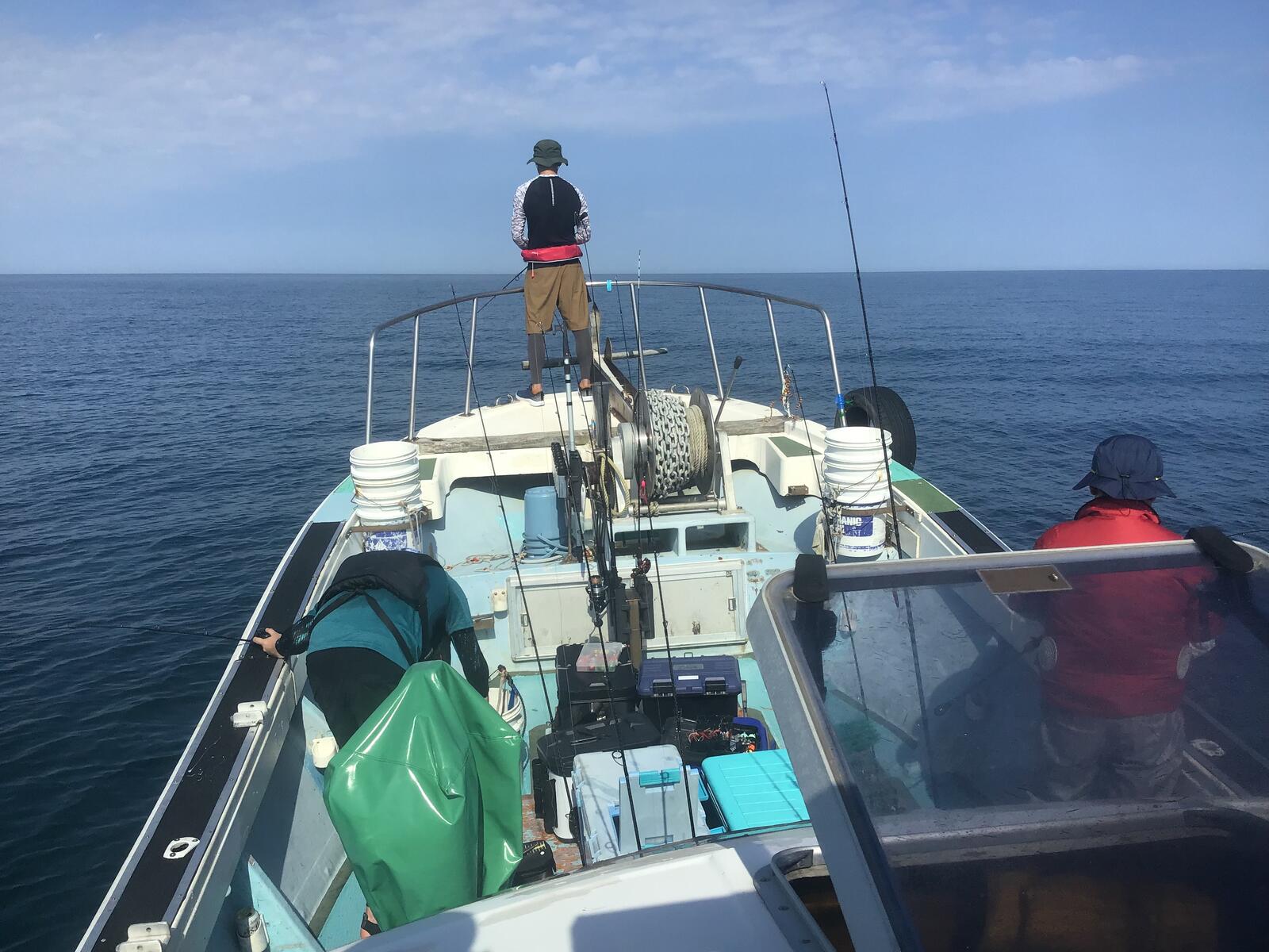 2024年07月23日 240723のジギング 今日も暑く海はナギです。長野市のM橋様グループがジギング中です。 同 S様とキジハタ好調でした。 同氏のクーラーボックスです。キジハタと青物がいます。 長野市のI原様にヒットです。 ワラサでした。今日は大型のヒットが無かったようです。 日によって色々です。明日は風吹くので出船はありませんが、木金土の3日間はナギのようです。日曜はまだ良く分かりません。シケ後に期待したいです。沖は今日も風が有り心地良く感じました。
