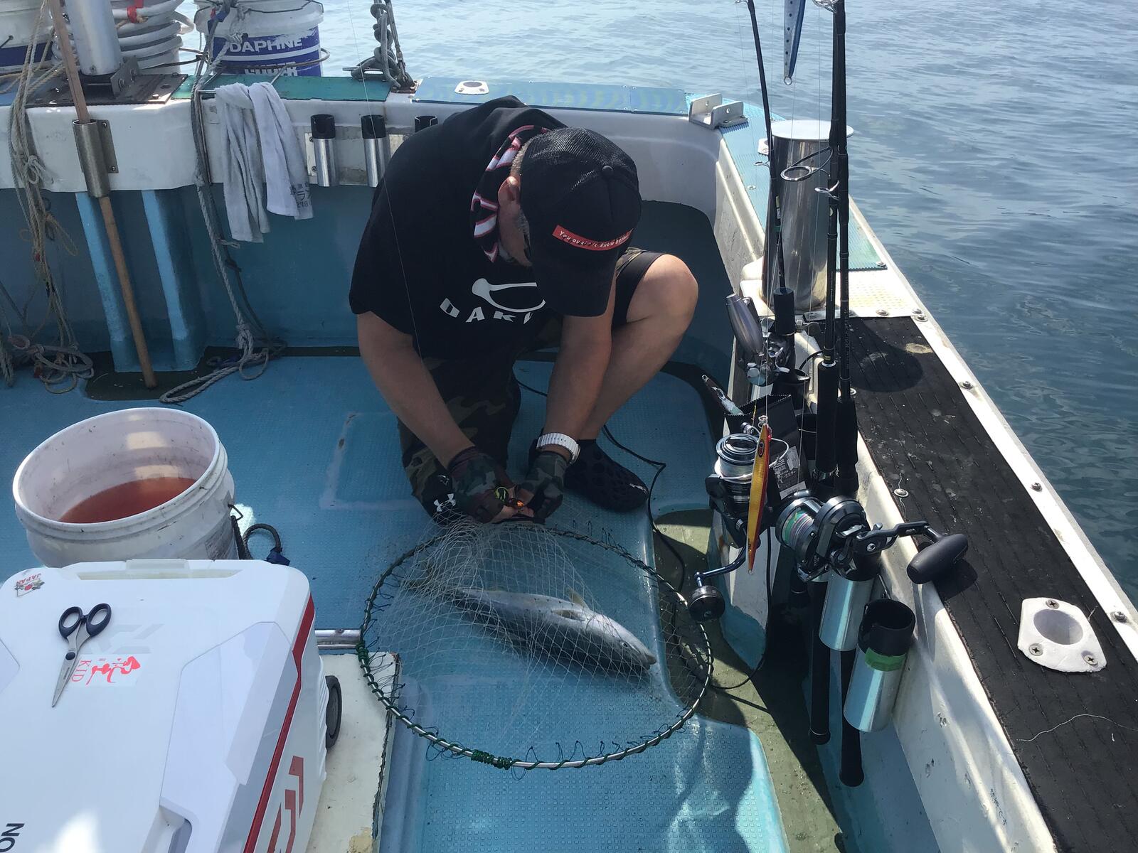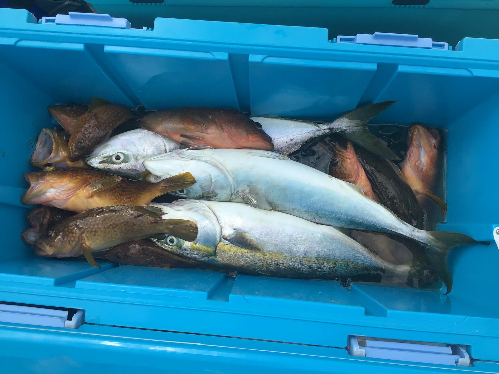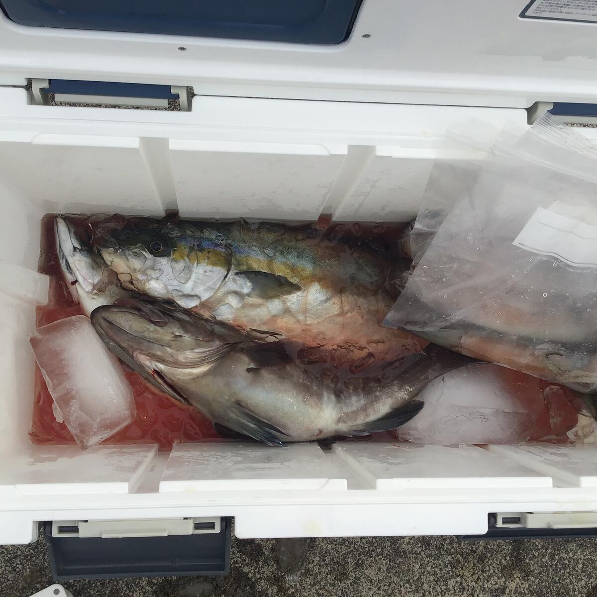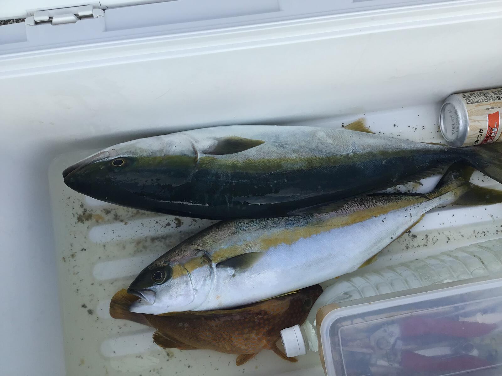 2024年07月21日 240721のジギング 真夏ですね。海はナギです。今日はヒラマサとワラサです。 市内のU木様のクーラーボックスです。ヒラマサとワラサでした。 Y山様に強めのヒットでした。釣れたヒラマサとワラサはビッグでは無かったのでリリースでした。大きくなって帰って来るでしょう。U木様にもヒット。今日のは横に泳ぎますね。他にはキジハタ等が釣れていました。明日は風が吹くようなので休みです。明後日火曜日から出船です。空いていますので皆様お出で下さい。