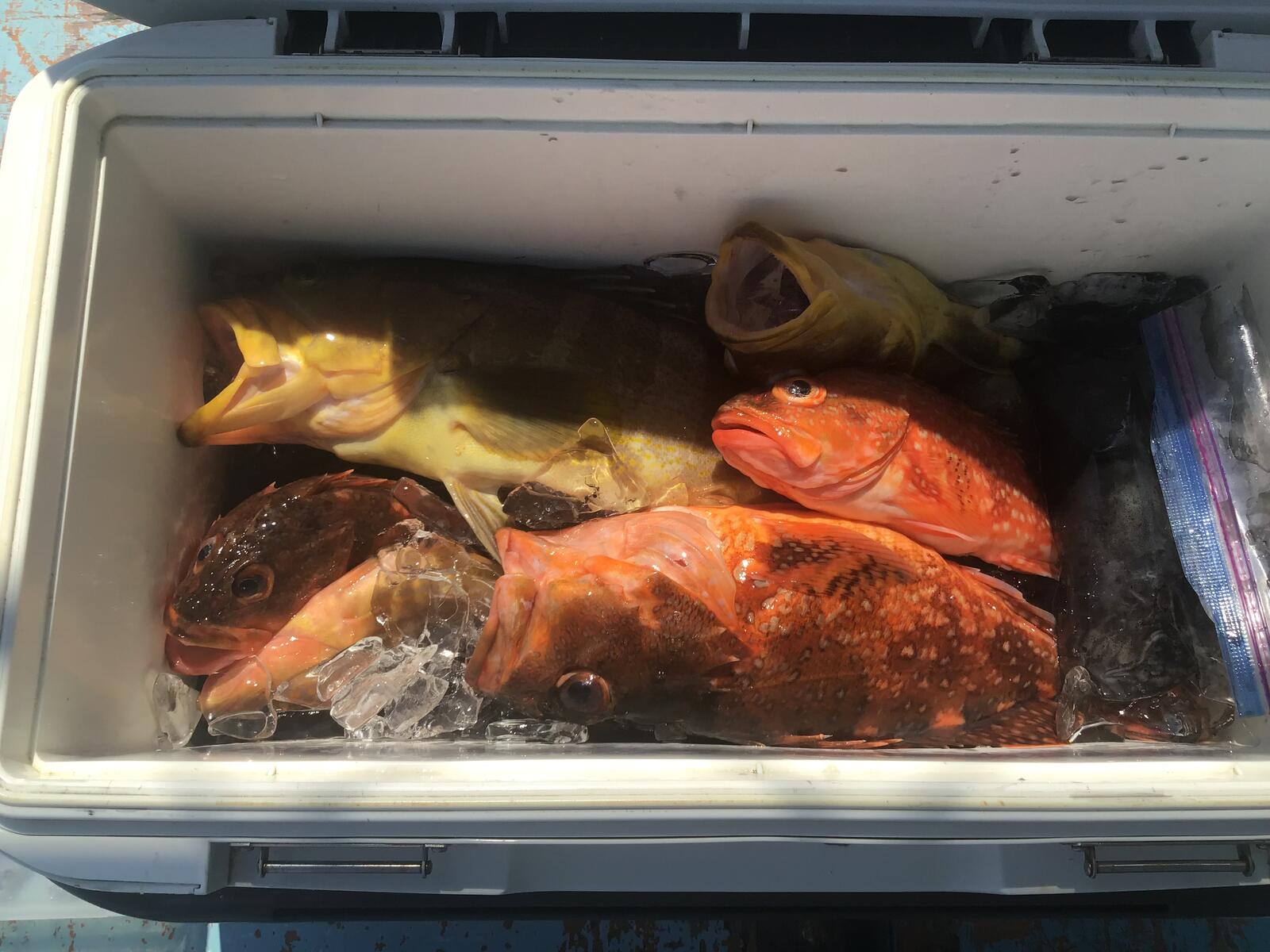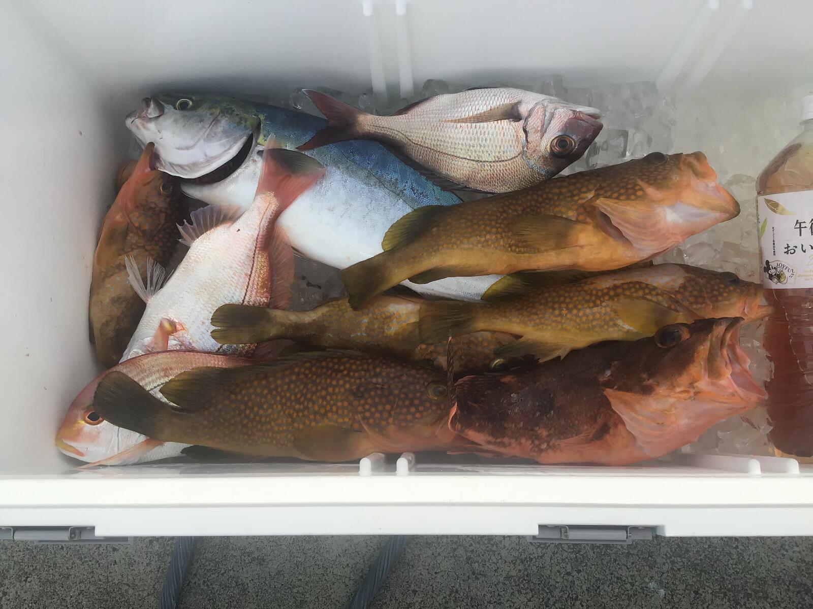 同氏のヒラメ、ヒラマサ、その他の根魚です。根魚は見えませんが下の方にいっぱいます。