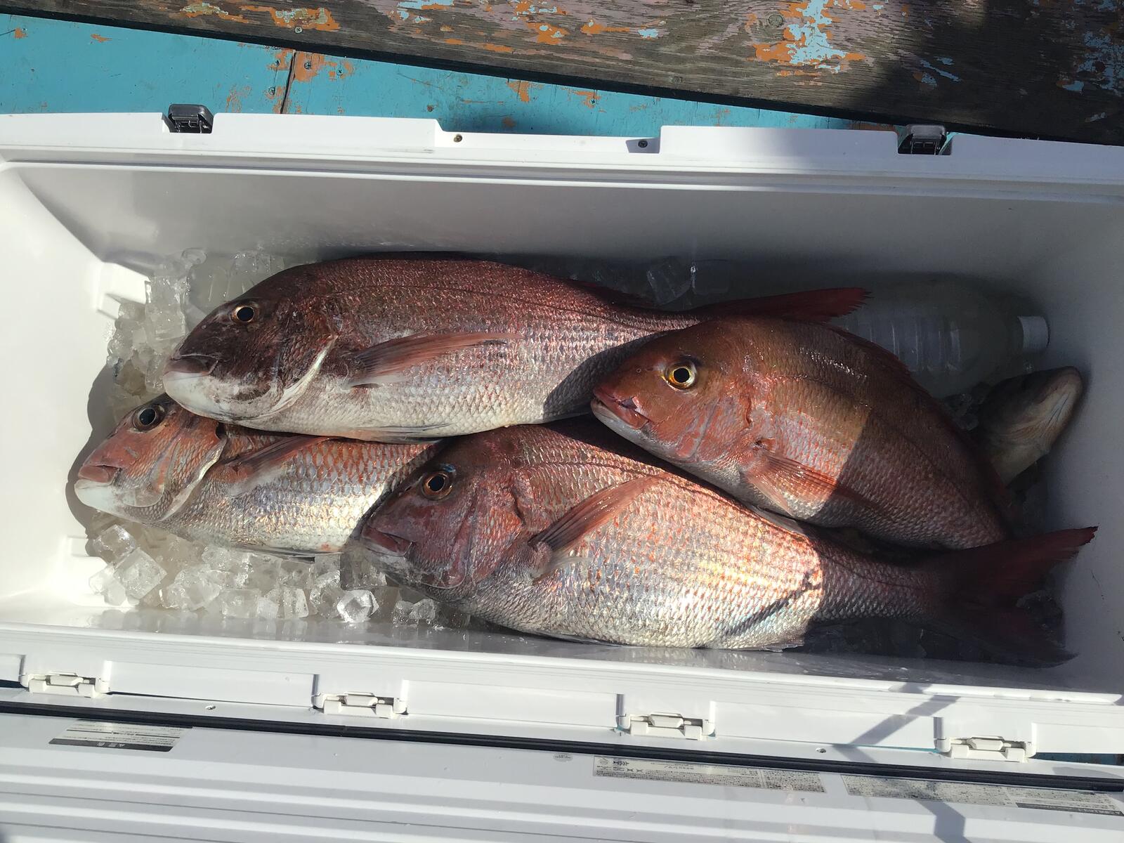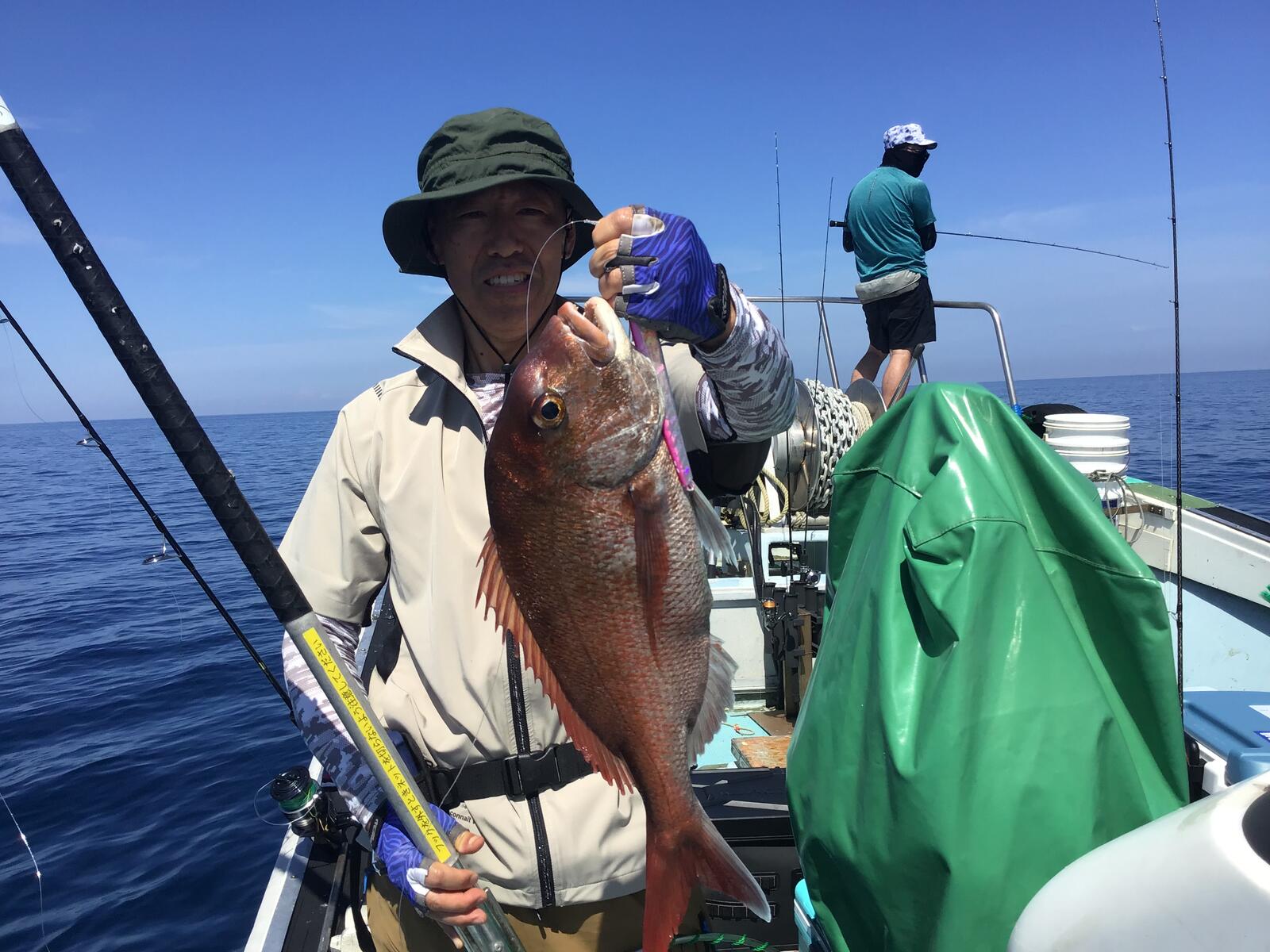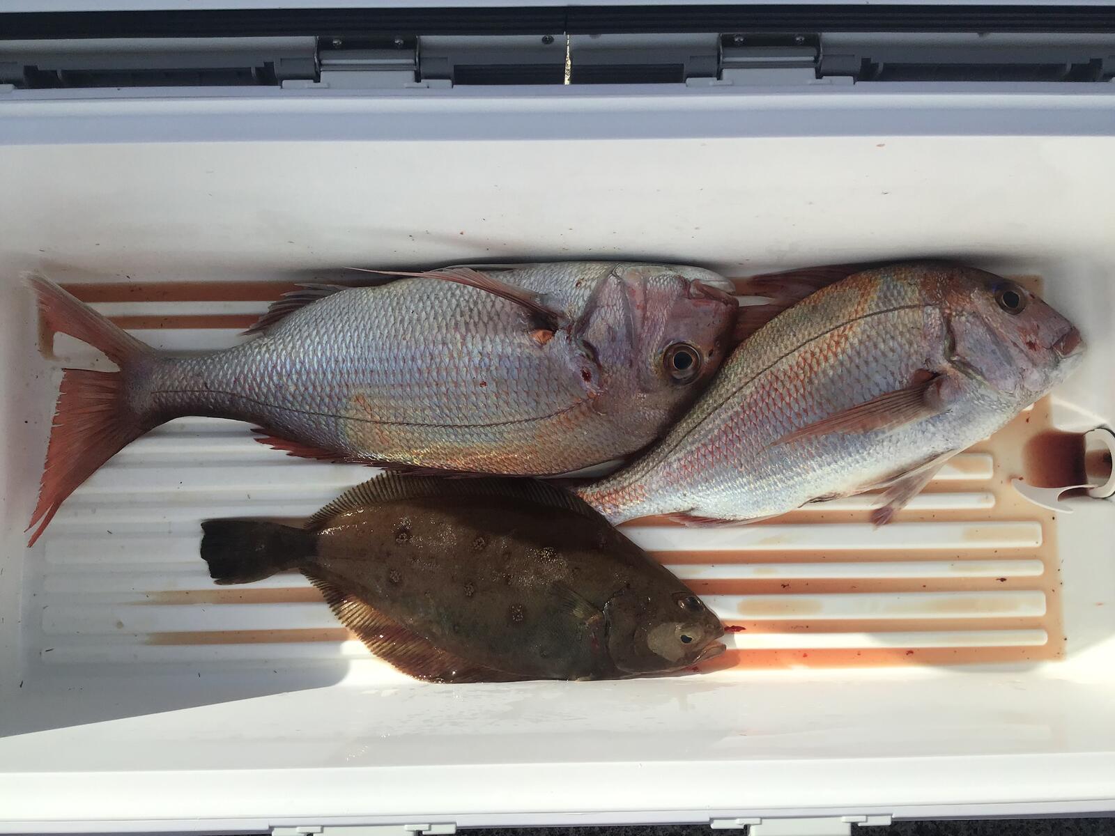 マダイが上がって来ました。良い型でした。2枚釣れています。